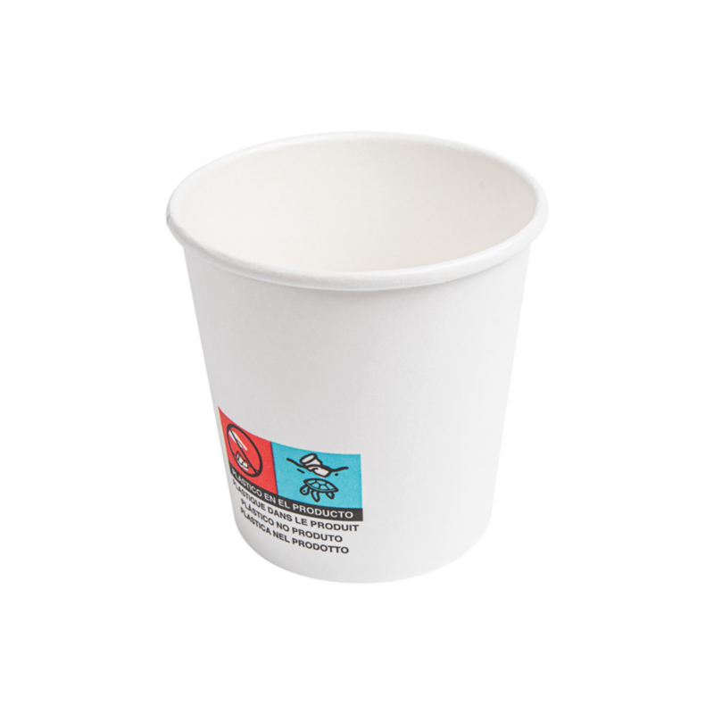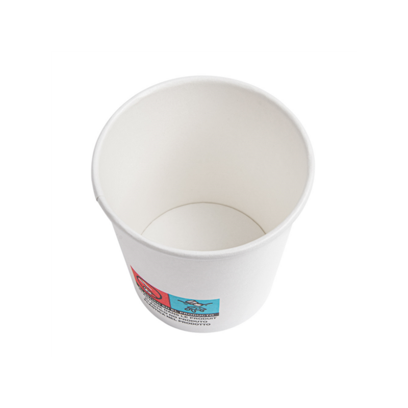Bicchiere monouso 90ml in carta kraft riciclata con rivestimento PE, colore bianco, ideale per bevande calde fino a 70°C per un massimo di 2 ore. Con diametro 5,4 cm e altezza 5,5 cm, è realizzato in legno FSC e certificato CPAP/81 per la raccolta carta, garantendo sostenibilità e riciclabilità. Non adatto a forno tradizionale, offre una soluzione pratica, igienica ed ecologica per colazioni, pause caffè, eventi o degustazioni, unendo robustezza e rispetto per l’ambiente.