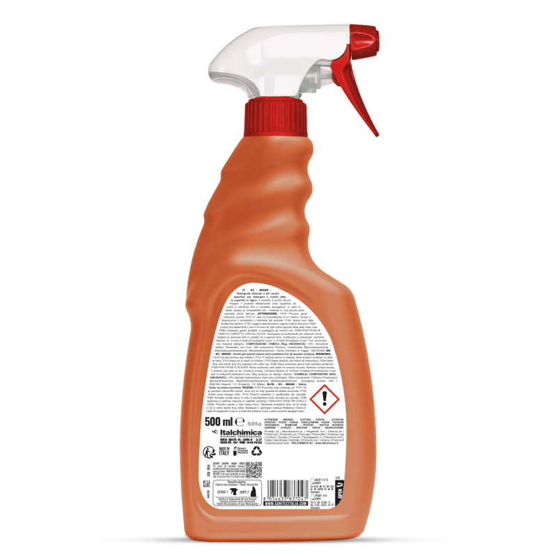 Detergente delicato a pH neutro specifico per detergere e nutrire tutte le superfici in legno.