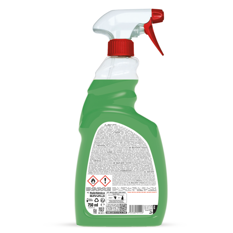 Utile per la disinfezione di cucine, bagni e di tutte le superfici a contatto con gli alimenti.