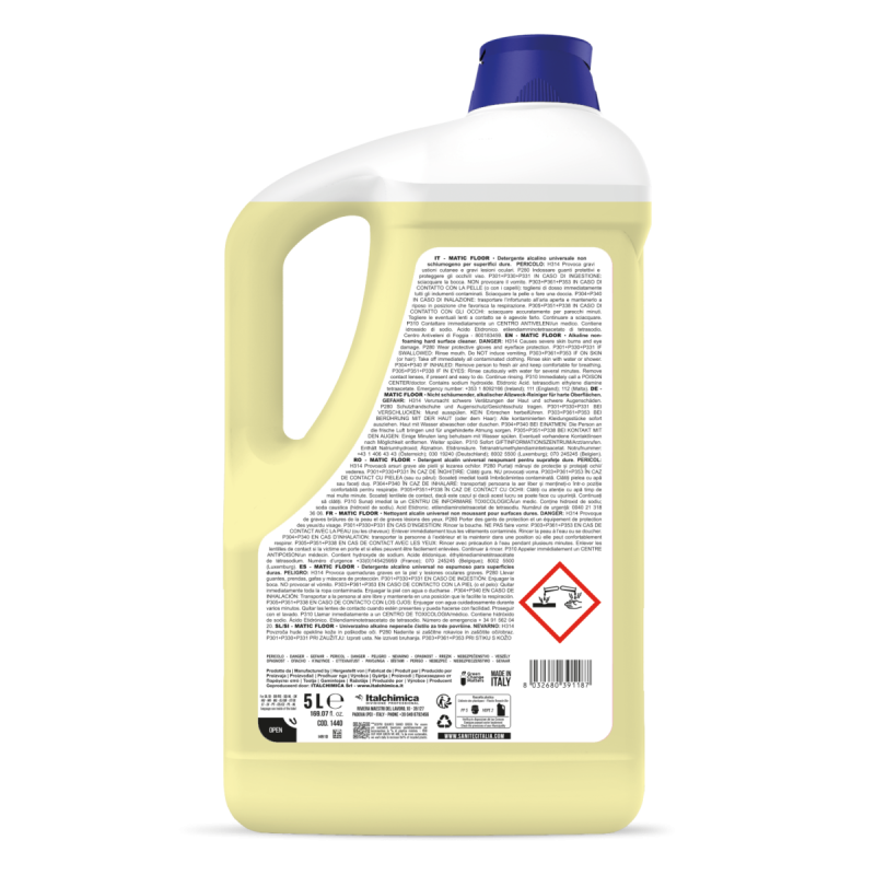 Diluire il prodotto in acqua secondo le indicazioni, distribuirlo sulle superfici da trattare con panno, mop o lavasciuga. Non necessita di risciacquo. DOSAGGIO: 20-40 ml (2-4 tappi ogni 5 litri) in funzione al grado di sporco.