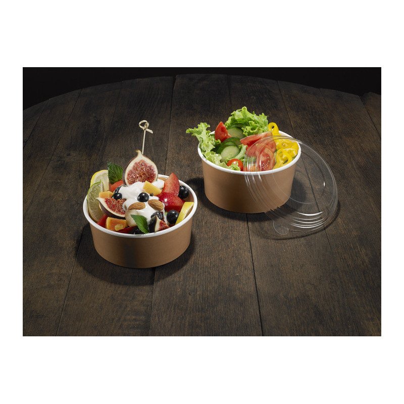 Insalatiera in Cartoncino avana + PE, idoneo per il contatto diretto con alimenti, ideale per ristoranti, bar, pasticcerie, fast-food e cibo d'asporto.