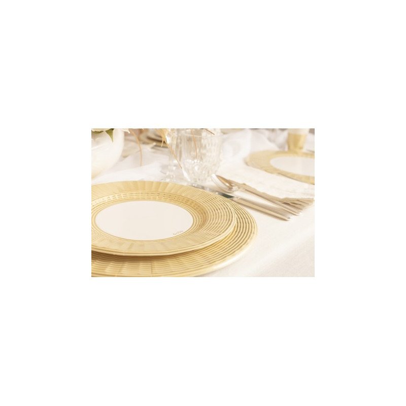 Perfetto per pranzi e cene natalizie, feste, catering e decorazioni da tavola, il piatto Elegance Gold aggiunge un tocco di classe e calore alla tua mise en-place