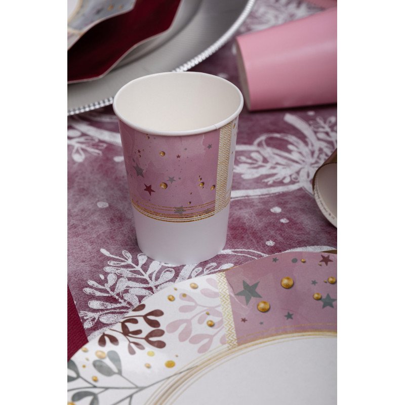 Eleganti bicchieri compostabili da 250 cc in finitura rose gold, perfetti per il periodo natalizio.