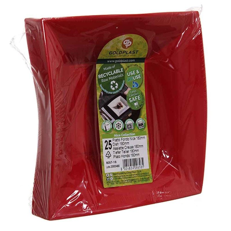 1 Confezione piatti fondi quadrato riutilizzabili di colore rosso da 25 pezzi