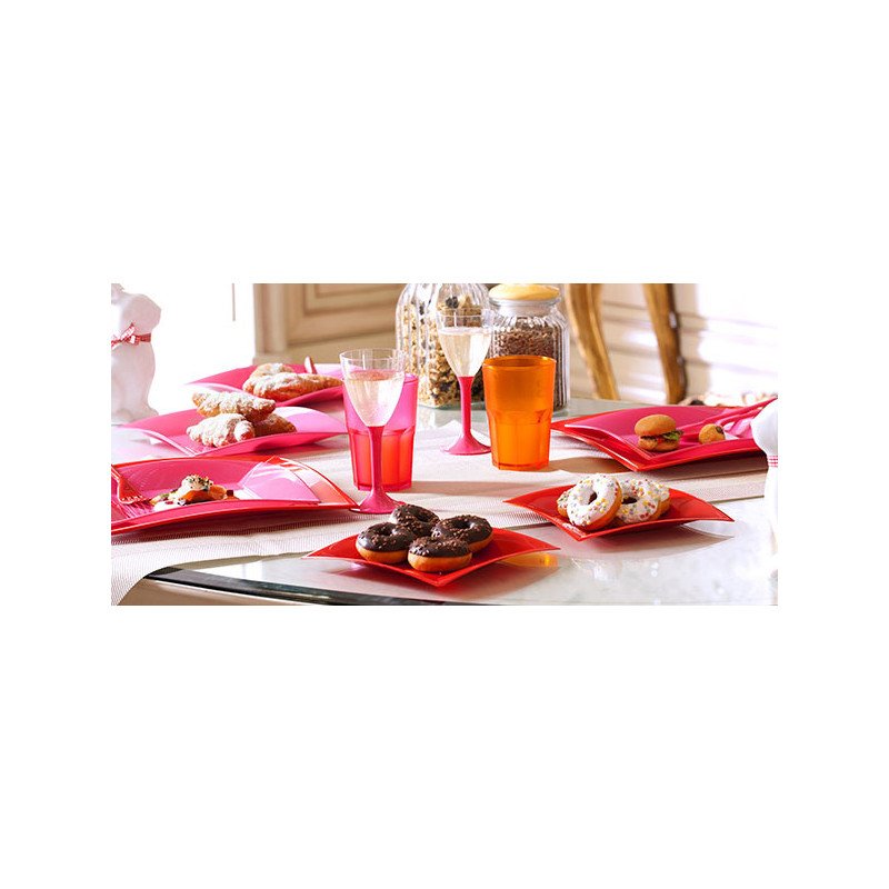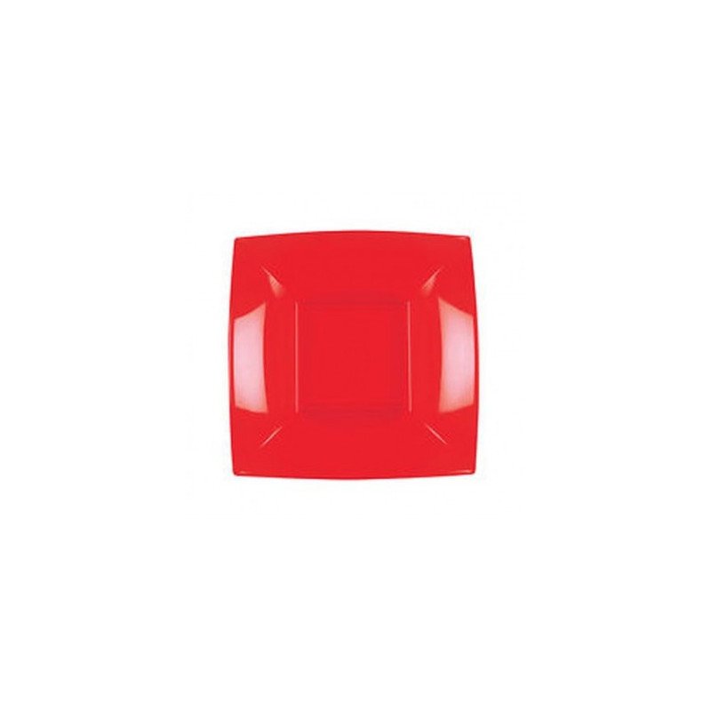 1 Confezione piatti piano quadrato riutilizzabili di colore rosso da 12 pezzi