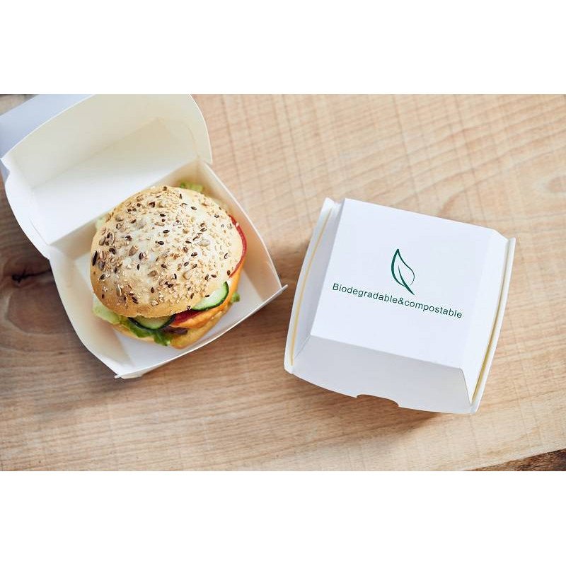 1 Confezione scatole monouso per Hamburger o Panini Bio e Compostabile colore Bianco da 25 pezzi.