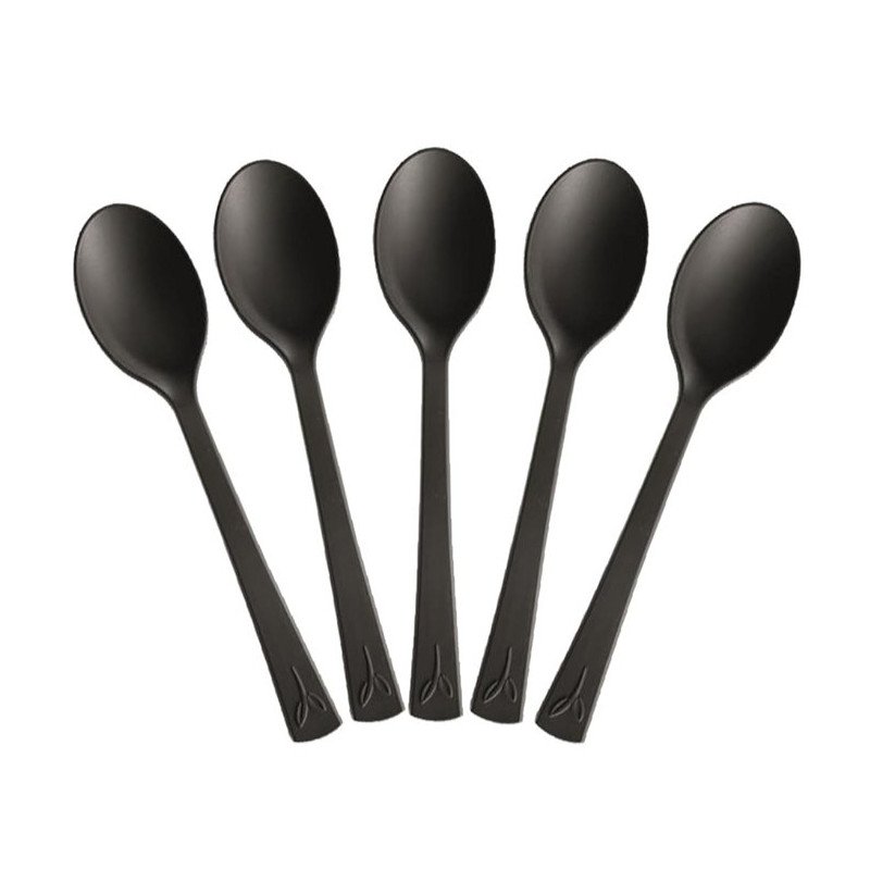 Cucchiaini neri compostabili in CPLA, ideali per finger food, degustazioni, dessert, catering ed eventi. Realizzati con materiale di origine vegetale da fonti rinnovabili, sono bio, organic e natural, idonei al contatto con alimenti. Certificati OK Compost e TÜV, garantiscono qualità e sostenibilità ambientale. Il design elegante e il colore nero valorizzano la presentazione delle preparazioni, mentre la confezione da 100 pezzi li rende una soluzione pratica e professionale per un servizio monouso eco-friendly.